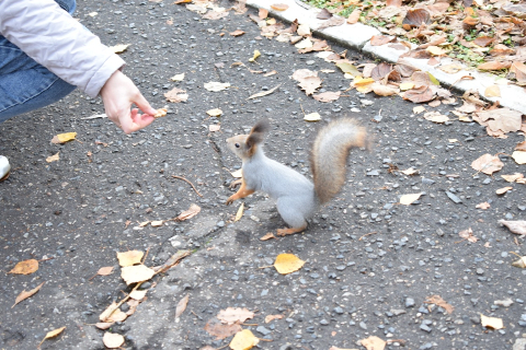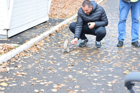 В Пушкинском парке решили летом погостить, а теперь обживаются и чувствуют себя совершенно прекрасно пушистые белочки. Шустрые, забавные, но хозяйственные, они очень ответственно готовятся к зиме - прячут орехи, которыми их угощают посетители парка. Запасов много не бывает!